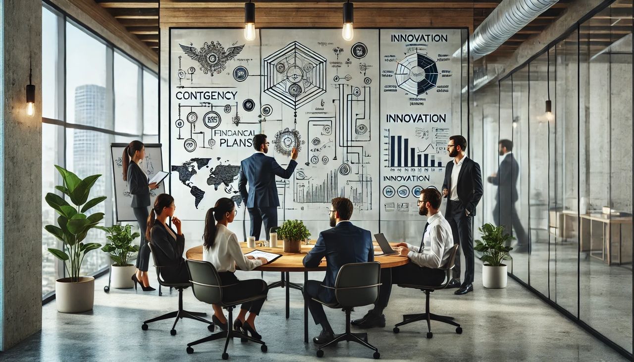 A professional workspace with a team of consultants and startup leaders discussing scaling strategies Scaling operations...